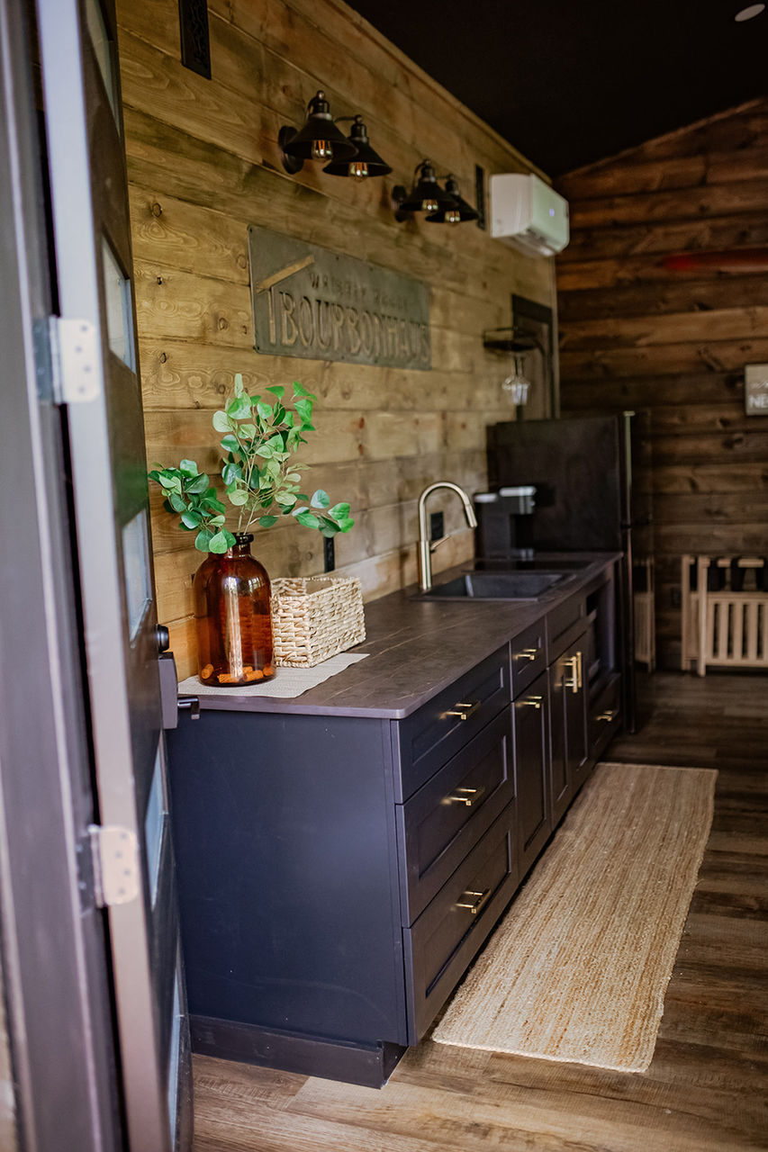 Rich, warm, and rustic with a modern edge - bourbonhaus is a moody retreat made for fireside lounging, wine sipping, and soaking in the stillness of the woods.